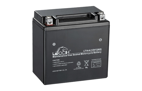 理士摩托车电池,湿式充电AGM VRLA免维护型——PP外壳,电池端子设置在电池盖中。